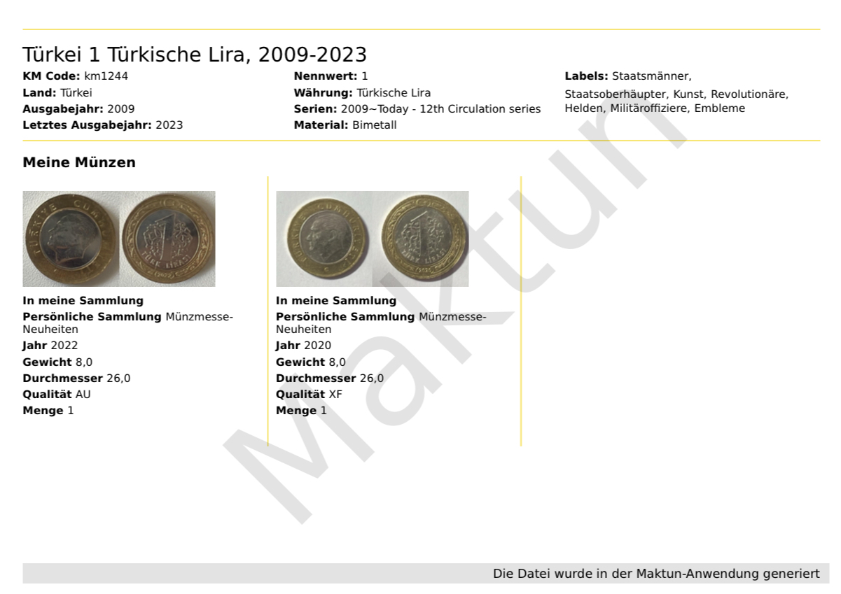 Nur allgemeine Daten für die "In meiner Sammlung"-Liste der Münzen und Banknoten. |