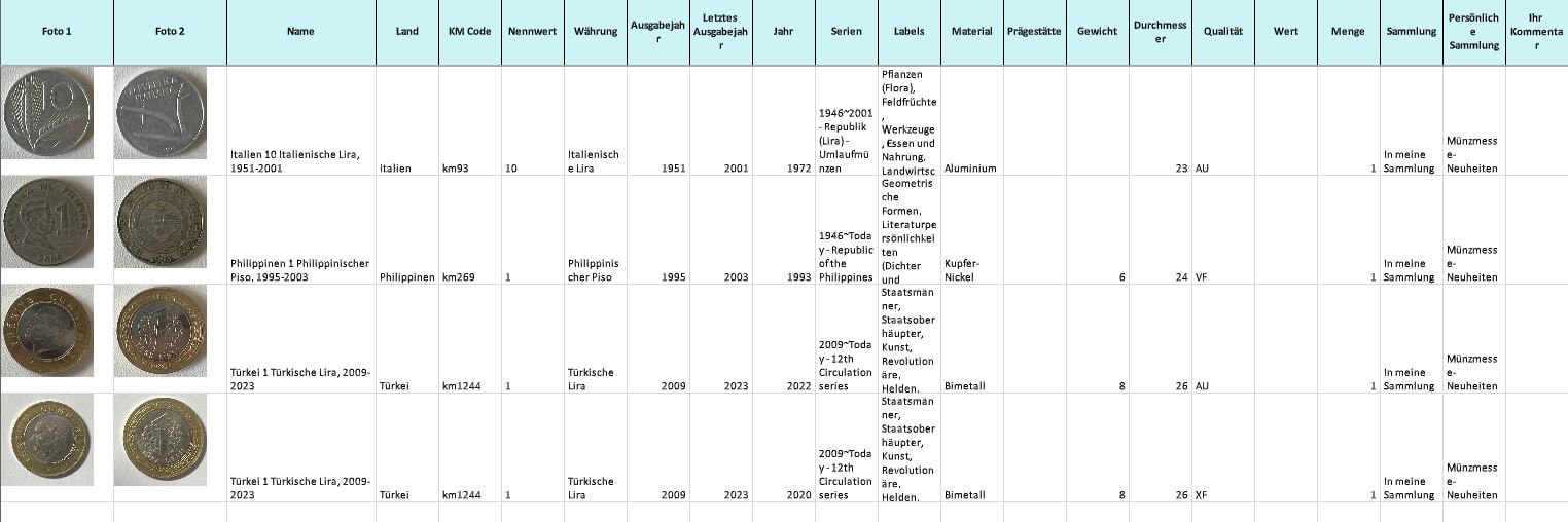 Sie können jetzt Ihre eigenen persönlichen Listen mit vielfältigen Themen erstellen, z. B. eine Liste für Euro-Münzen, eine Liste für Tombak-Münzen oder eine Liste für Känguru-Münzen.